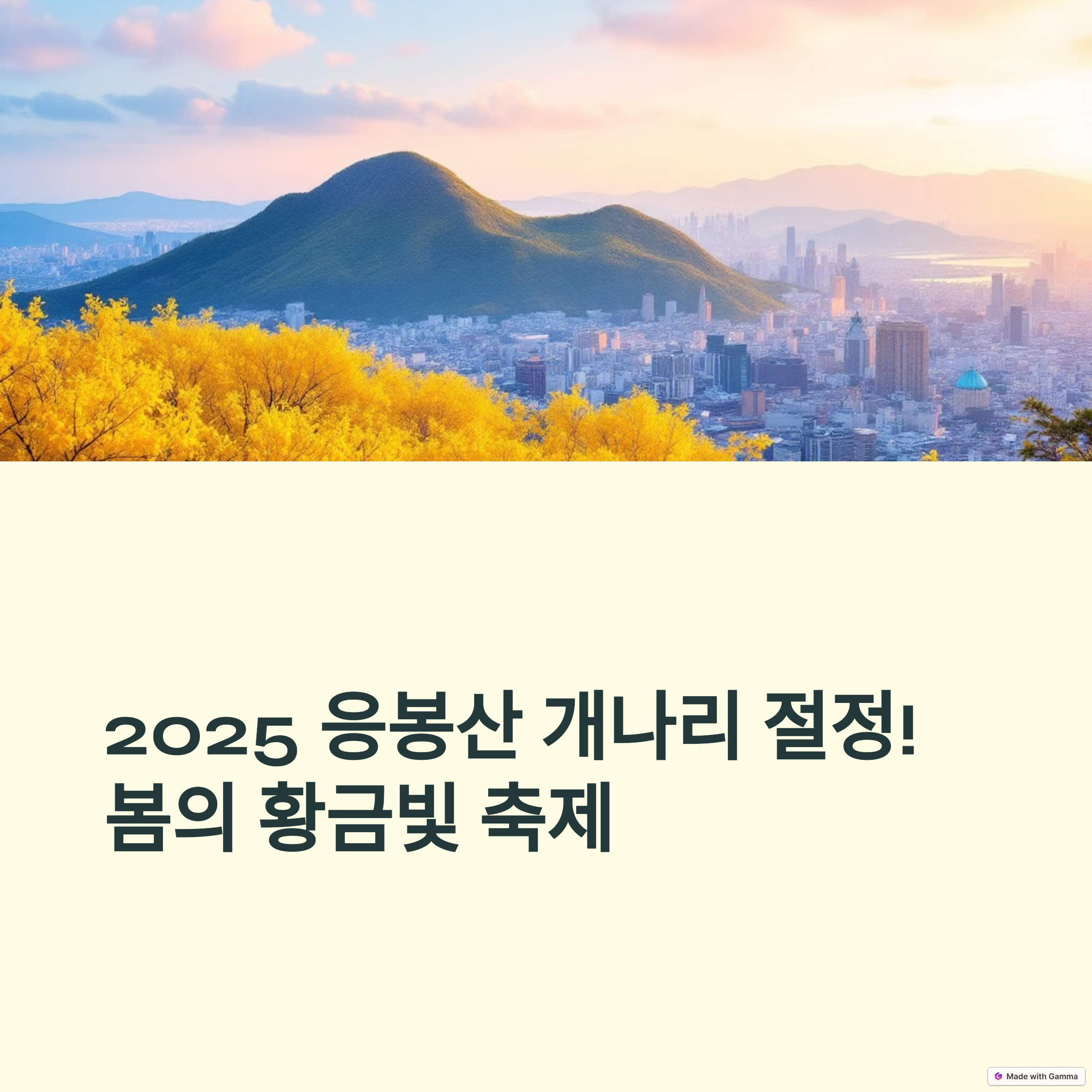 서울 성동구에 위치한 응봉산은 매년 봄이 되면 노란 개나리로 물드는 아름다운 명소입니다. 산 정상에 위치한 팔각정에서는 서울 전경을 감상할 수 있어 아침 산책이나 주말 나들이 장소로도 큰 사랑을 받고 있어요. 특히 3월 말 개화 시기에는 개나리 축제도 함께 열려 더욱 다채로운 즐거움을 경험할 수 있습니다.