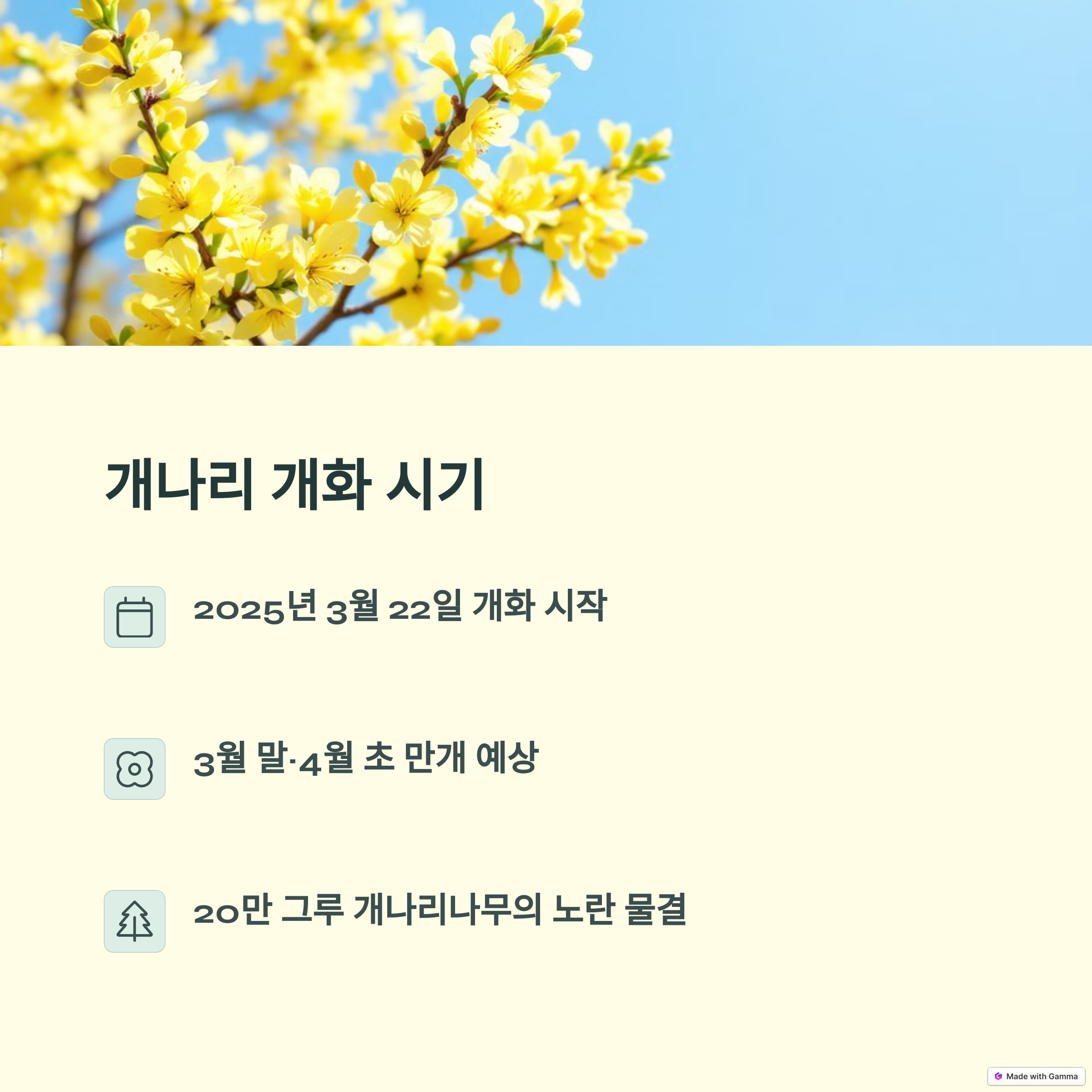 개나리 절정 | 3월 26일 ~ 3월 30일 (2025년 기준) |