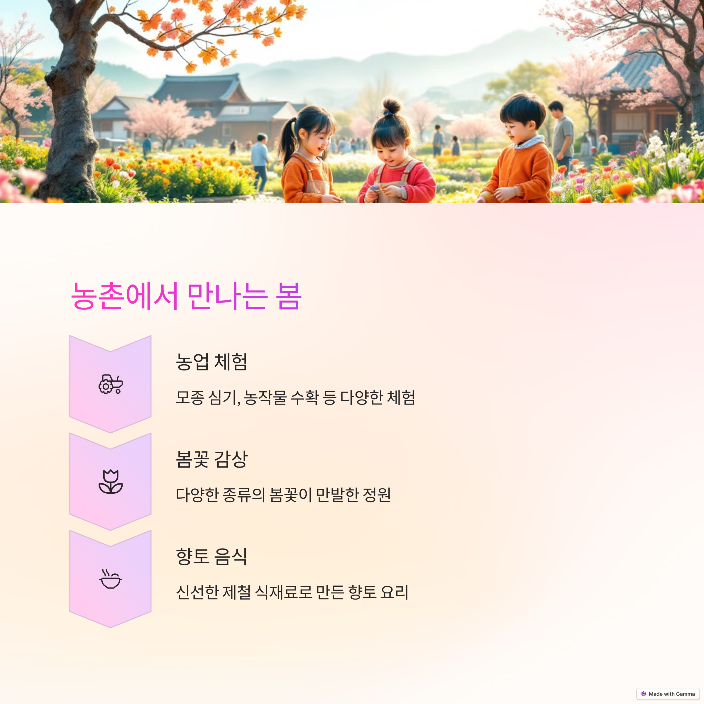 | 주요 테마 | 봄꽃, 체험, 힐링, 테마파크, 가족 여행 |