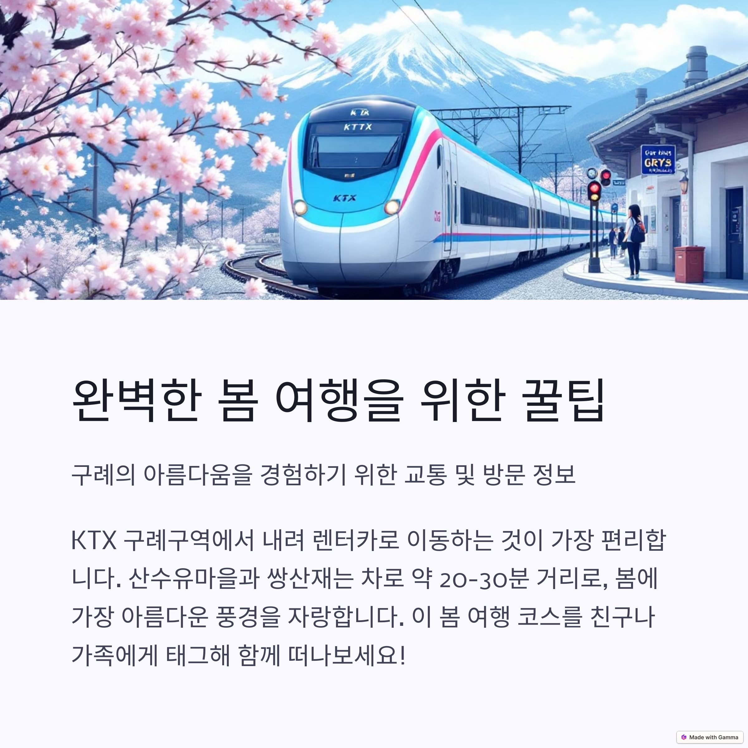 구례 여행을 다녀오신 경험이나, 궁금한 점이 있다면 댓글로 자유롭게 남겨주세요. 다른 분들의 여행 준비에도 큰 도움이 됩니다.