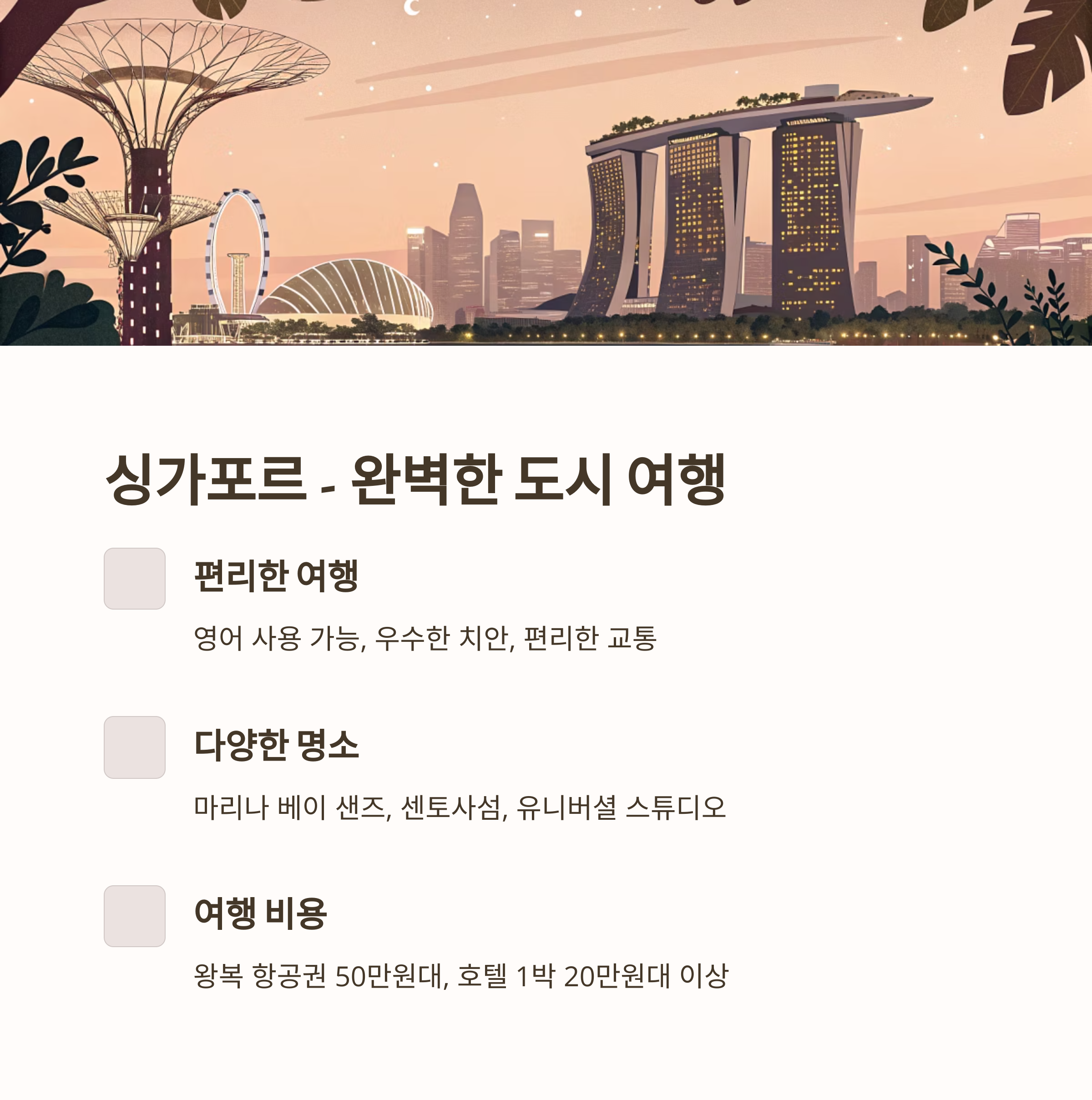 도시 감성을 누리고 싶다면 싱가포르를 추천합니다."