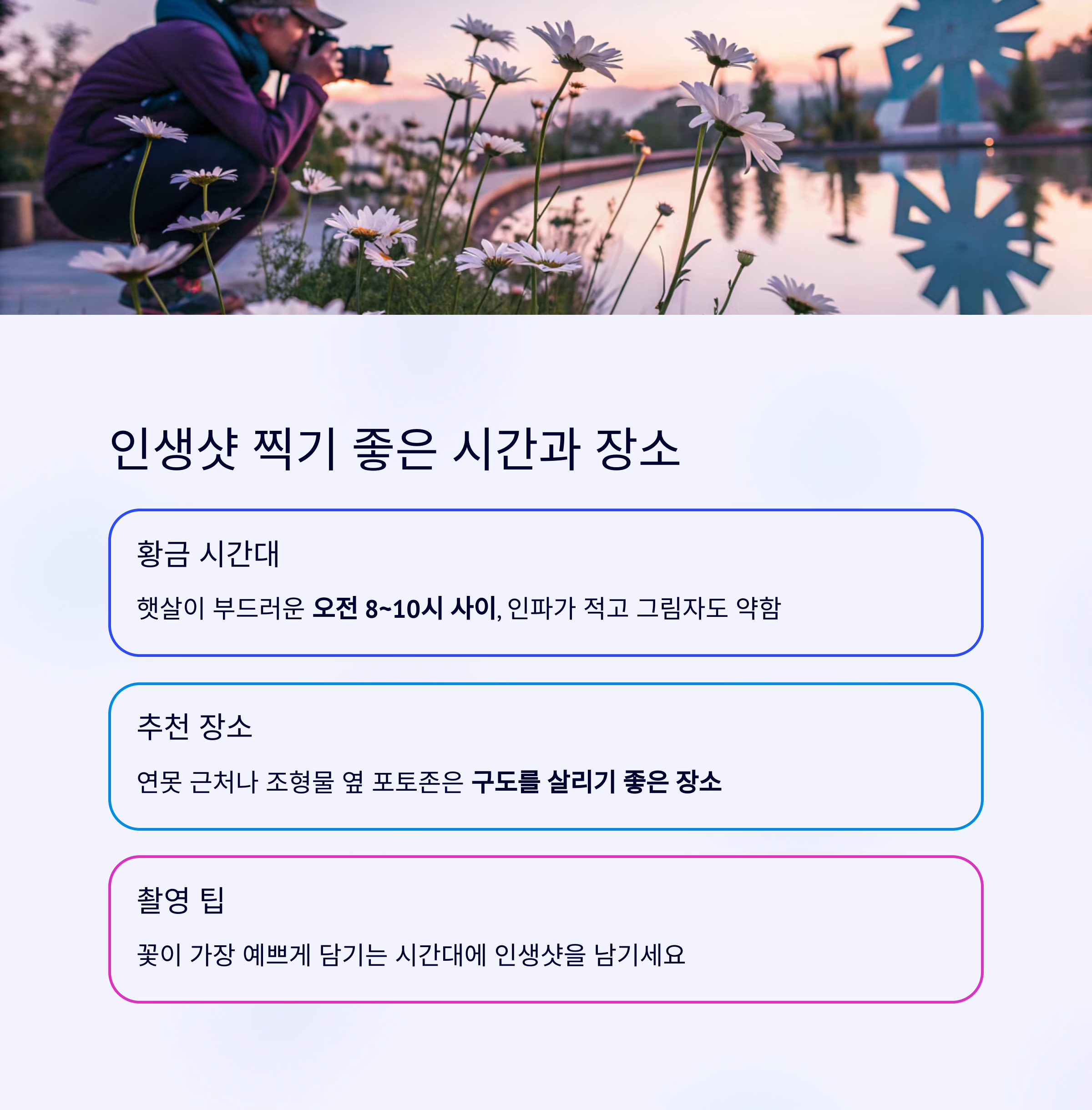 사진 찍기 좋은 시간과 자리, 이렇게 활용하세요