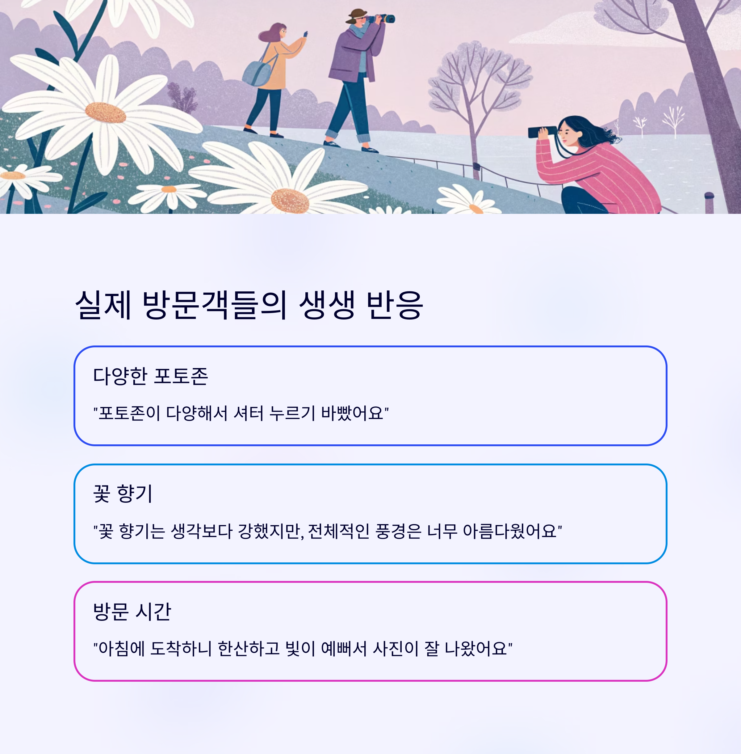 "꽃 향기는 생각보다 강했지만, 전체적인 풍경은 너무 아름다웠어요"